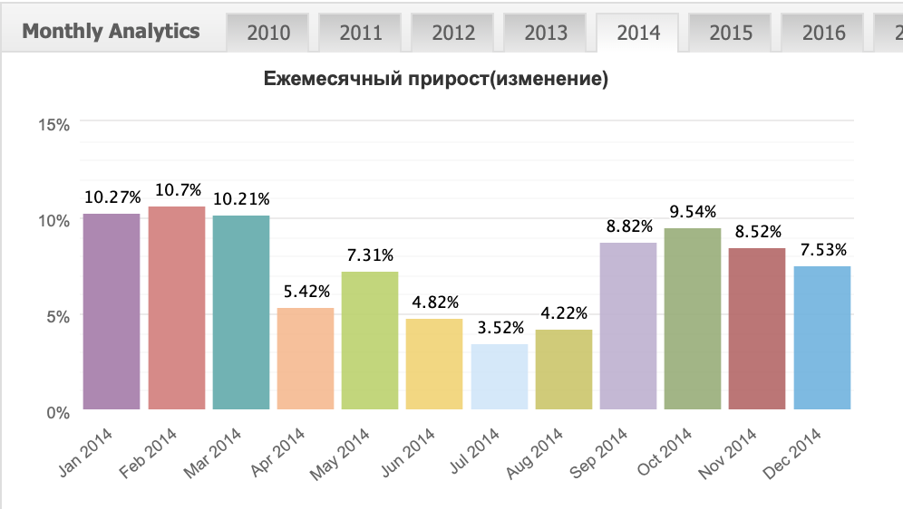 По итогу, вложив пополам 400$ весной 2010 года и постоянно реинвестируя полученный доход в начале 2015 на пике доходности, мы получили прибыль +1000% (4000$).