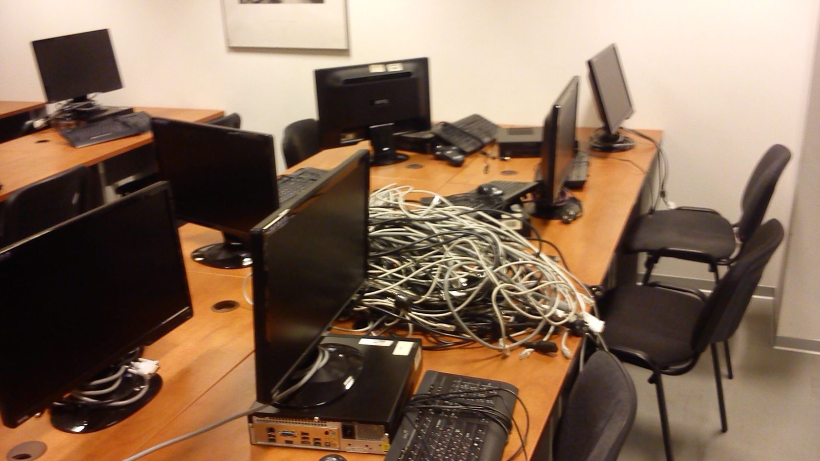 Установка компьютеров и мониторов. Переоборудование офиса для нашего дилинга.