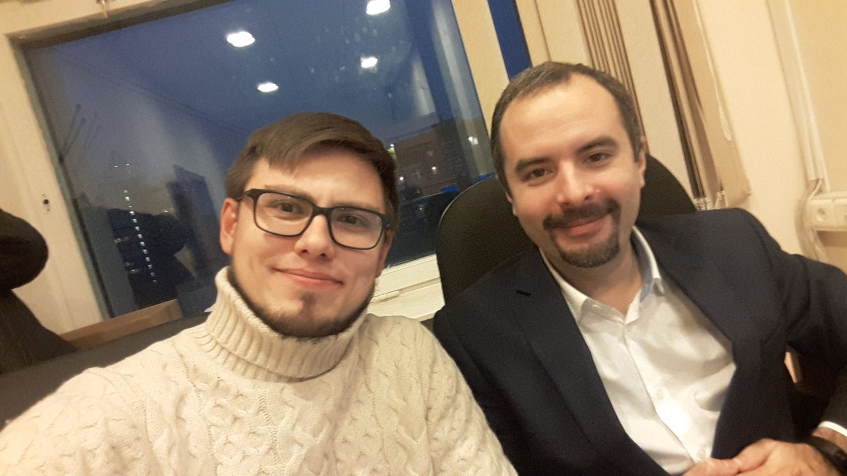 С Саней на фоне, какого-то старого окна в офисе Олега Михасенко (БКС)