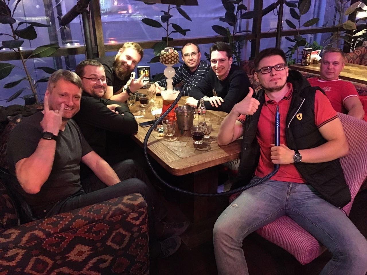 Дима Бондарь, я, Иван и Боря Тураевы, играем в покер после закрытия торговой сессии. Потом с Ваньком поехали в клуб тратить профит.